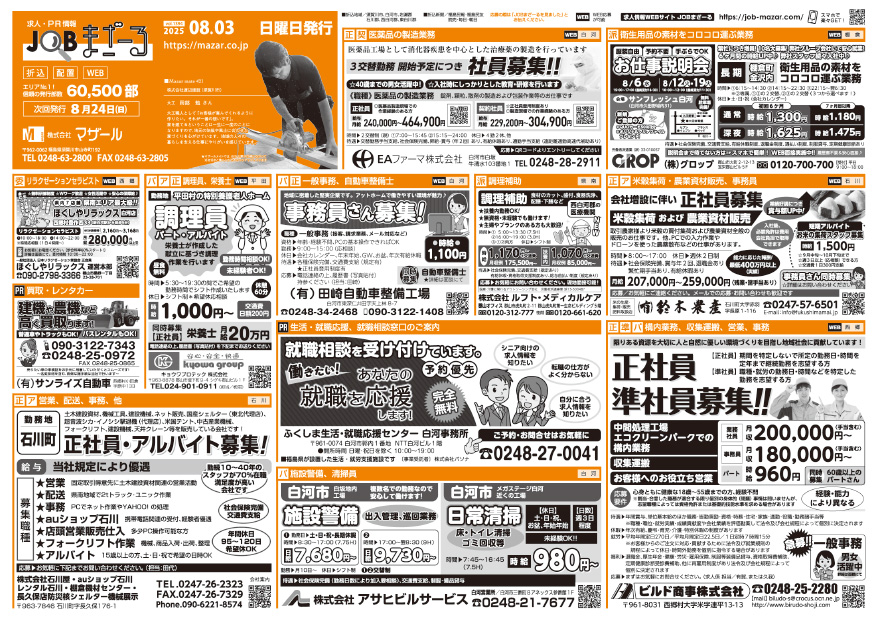 県南地区最多60,500部発行の《JOBまざーる8/3号》が発行になりました。