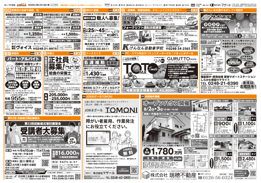白河市・須賀川市の求人情報紙!多彩な職種のお仕事が満載!