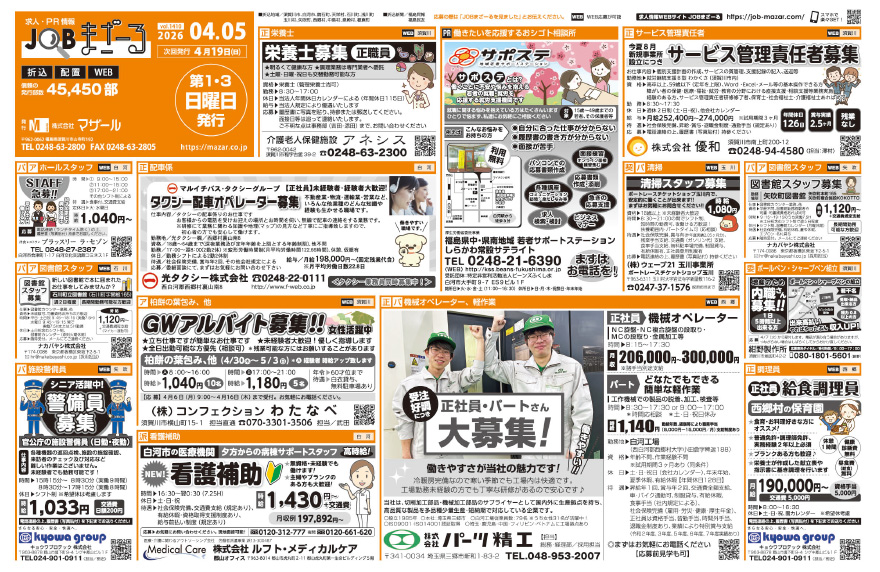 県南地区最多45,450部発行の《JOBまざーる4/5号》が発行になりました。